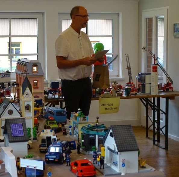 2023 Playmo 005aDie Präsentation wurde am Samstag feierlich durch Superintendent Markus Nietzke, Hermannsburg, eröffnet. Nietzke verwies in seinen Begrüßungsworten auf F. Schiller hin, der in seinen Briefen „Über die ästhetische Erziehung des Menschen“ die außergewöhnliche Bedeutung des Spielens hervorhob. Im Zusammenhang mit 2. Kor 3, 1 – 4 stellte Nietzke fest, „dass wir als Menschen einzigartig sind. Nicht durch äußere Empfehlungen oder Oberflächliches, sondern durch das, was in unseren Herzen geschrieben steht. Das Gute hat Gott durch Jesus in unser Herz gelegt. Gott hat uns zum Leben inklusive Spielen erschaffen. Playmobil ist also weit mehr als nur ein Spielzeug; es ist ein Medium, durch das wir unsere von Gott geschenkte Kreativität und Fantasie zum Ausdruck bringen. Wir können mit solchen Figuren und Welten die Geschichten unseres Herzens und unseres Geistes zum Leben erwecken.“